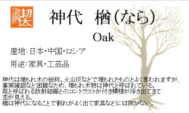 楢は神代になることで割れがよく出て家具などには向かない。