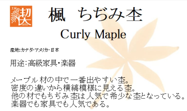 メープル材の中で一番出やすい杢。