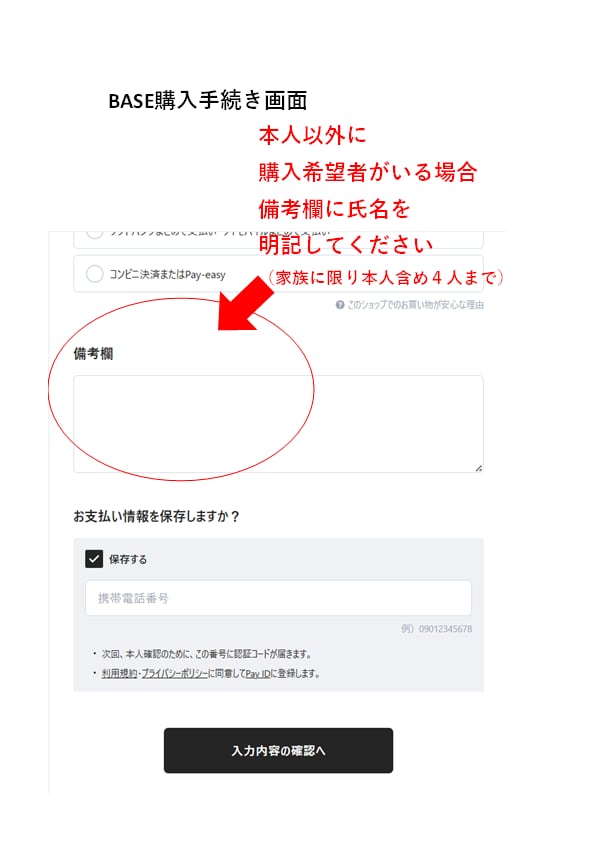 購入希望のご家族の氏名を備考欄に明記してください。記載ない方のご入場はできません。