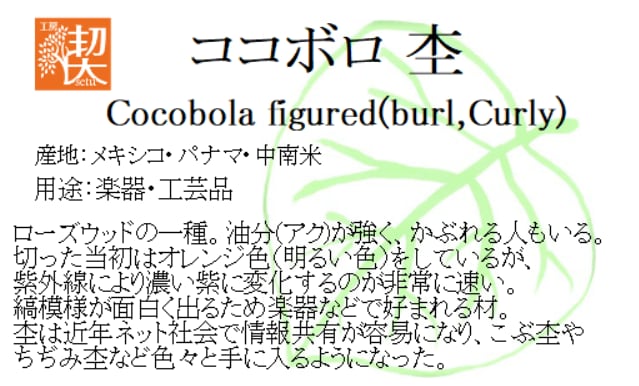 ローズウッドの一種。油分(アク)が強く、かぶれる人もいる。